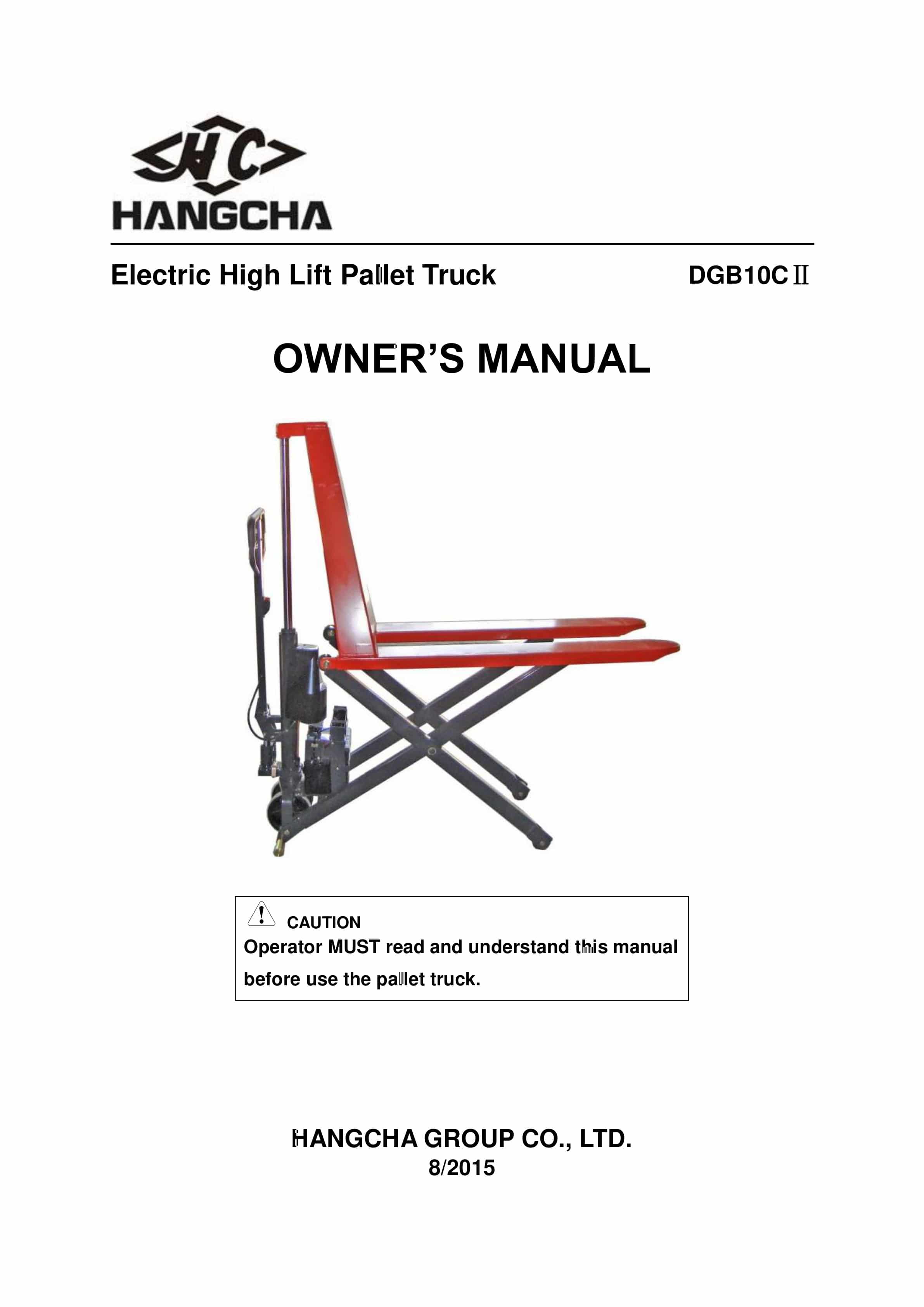 Hangcha DGB10CII Electric High Lift Pallet Truck Owner Manual