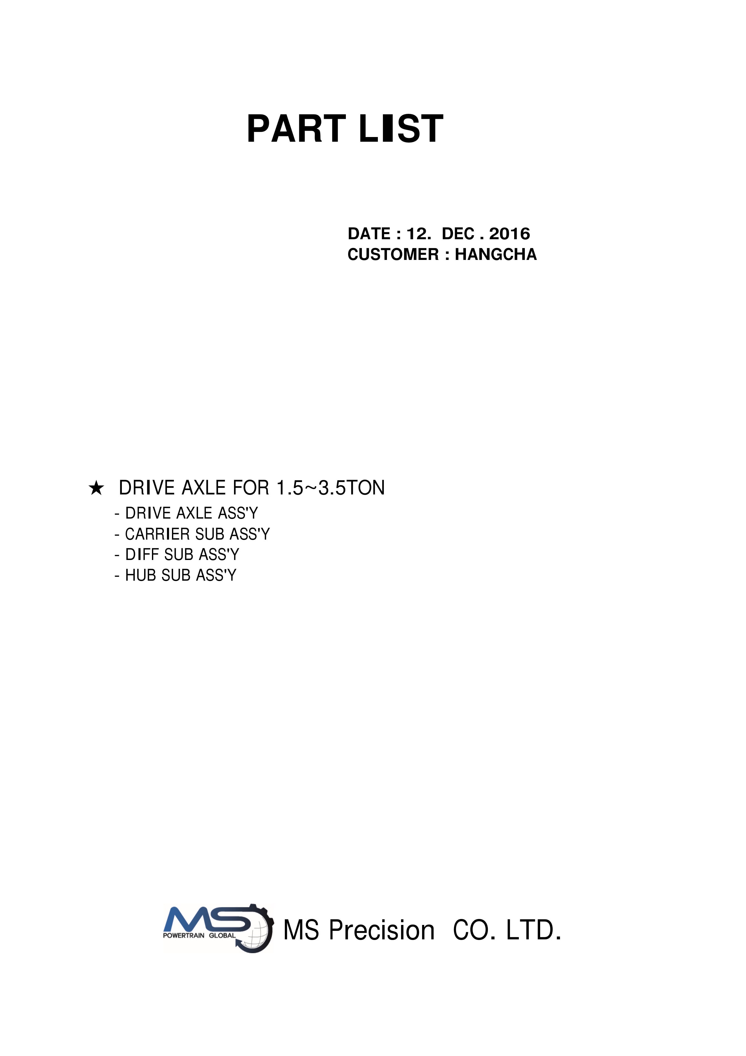 Hangcha Drive Axle For 1.5-3.5Ton Parts List