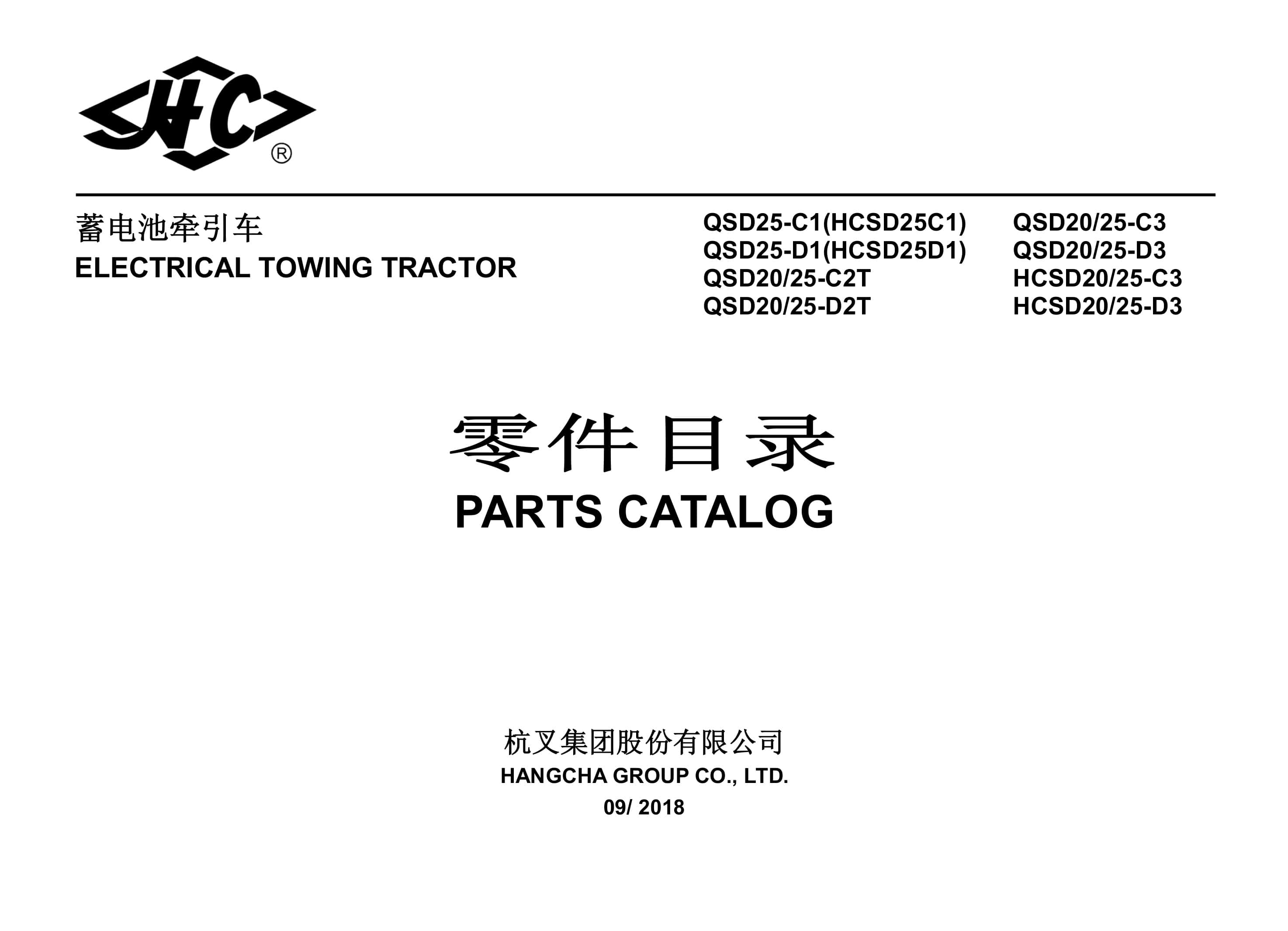 Hangcha QSD25-C1 to HCSD25-D3 Parts Catalog