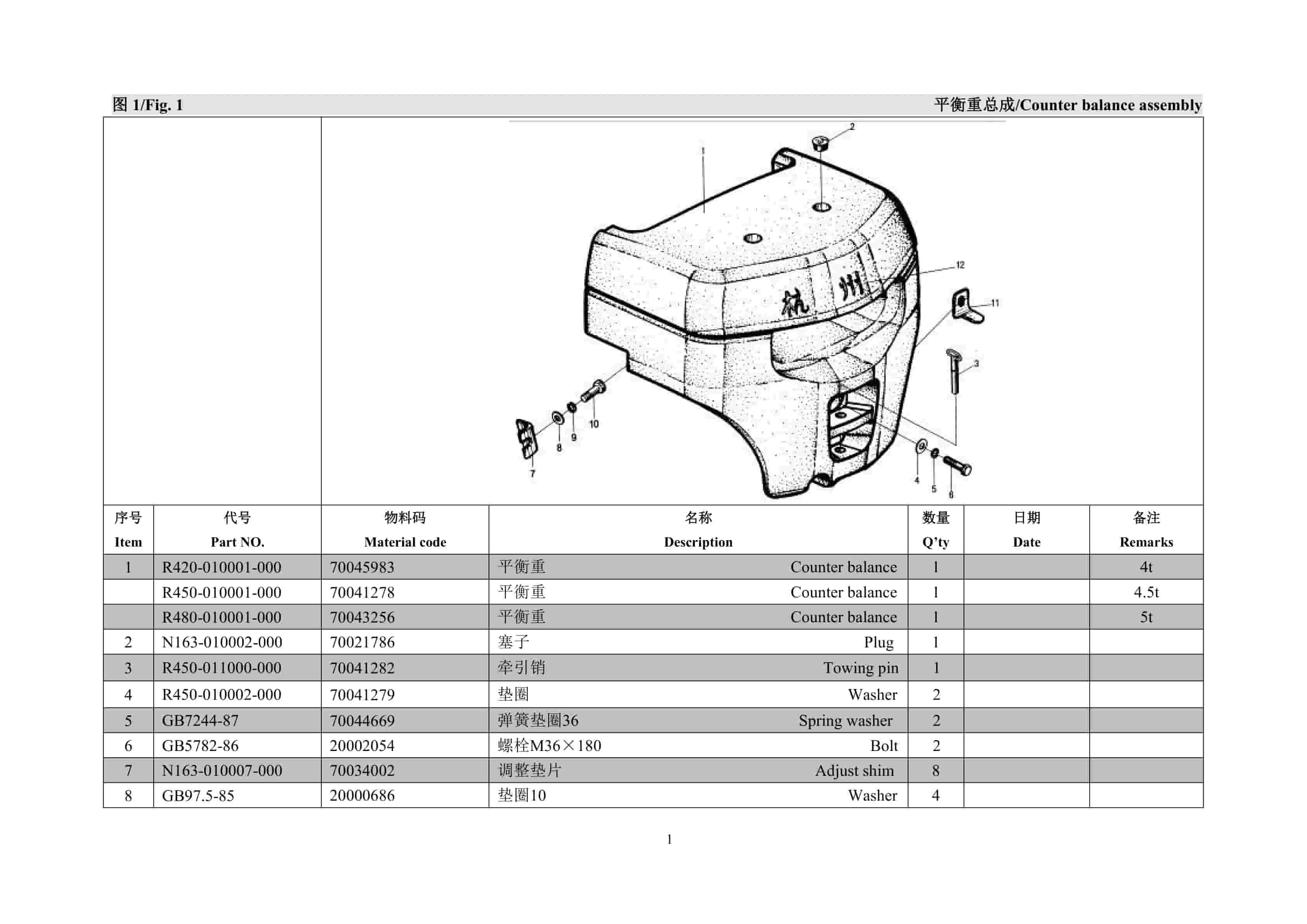 Hangcha 1.0t-1.8t R Series Counterbalanced Forklift Truck Parts Catalog