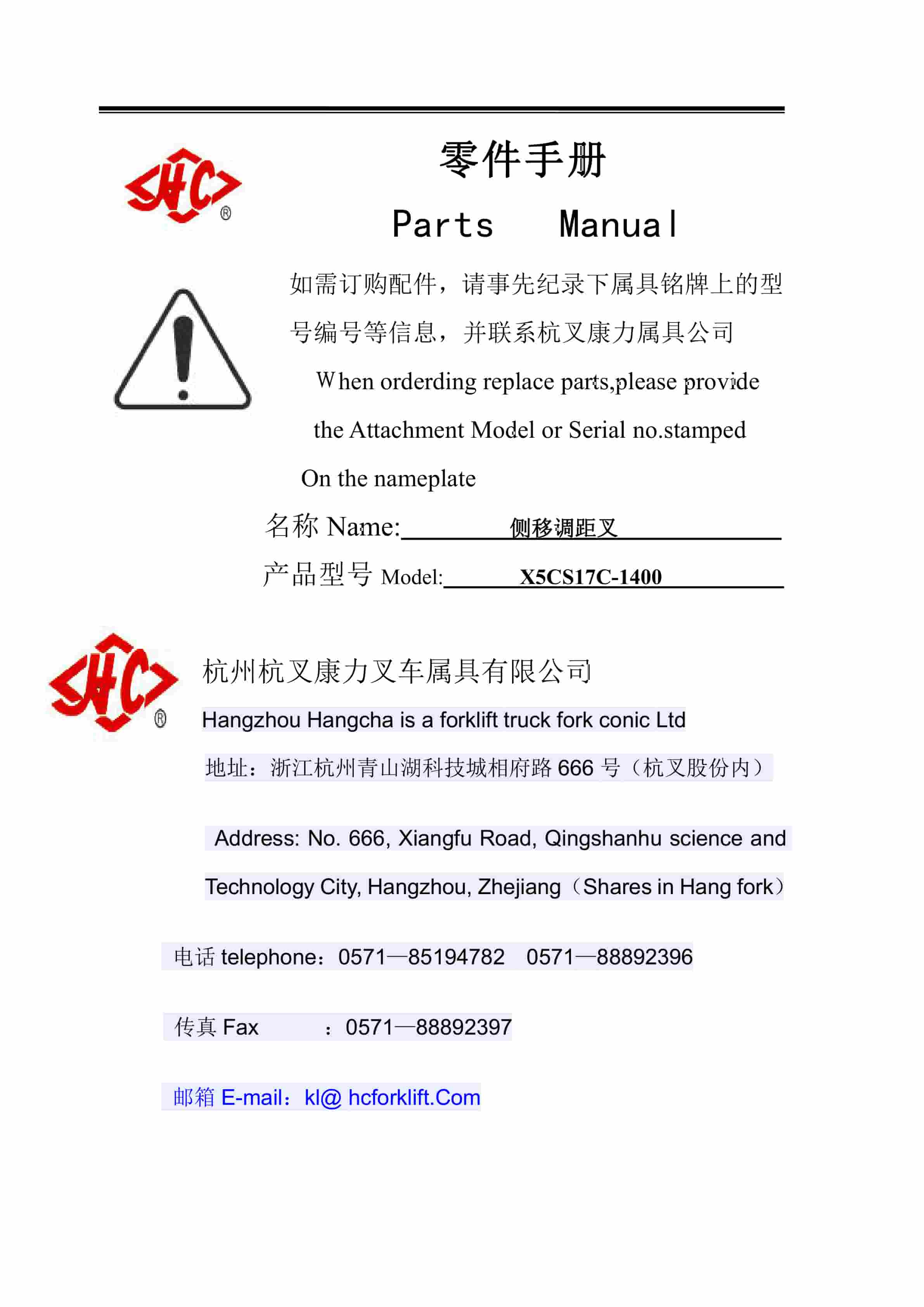 Hangcha X5CS17C-1400 Parts Catalog