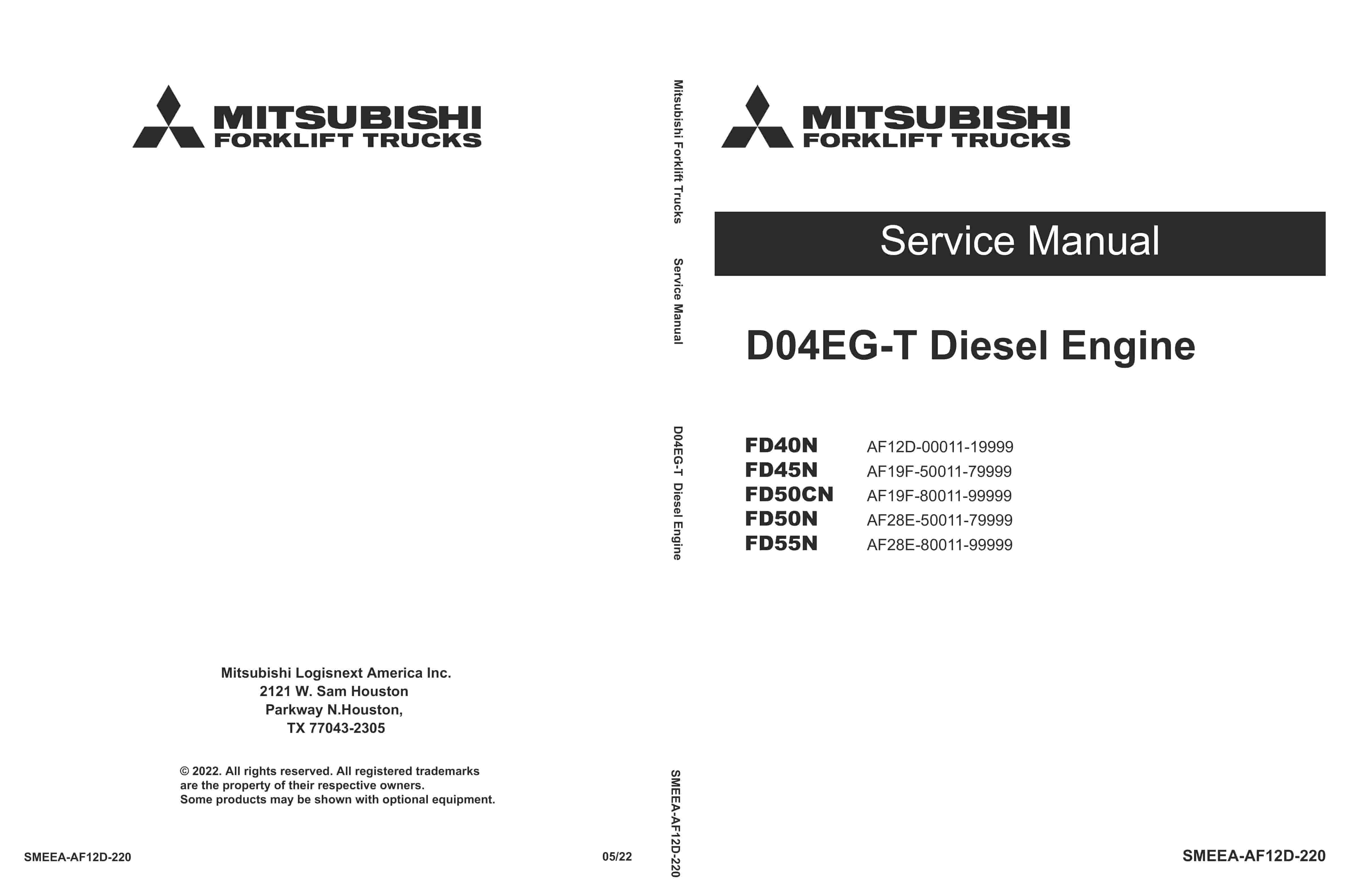 Mitsubishi D04EG-T Diesel Engine Service Manual SMEEA-AF12D-220