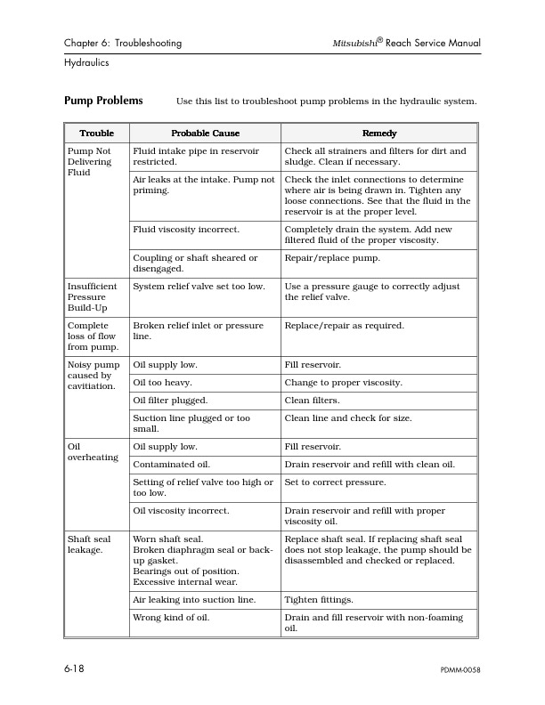 - 7.1.4.2.2. Lift/Lower Hydraulic System Troubleshooting