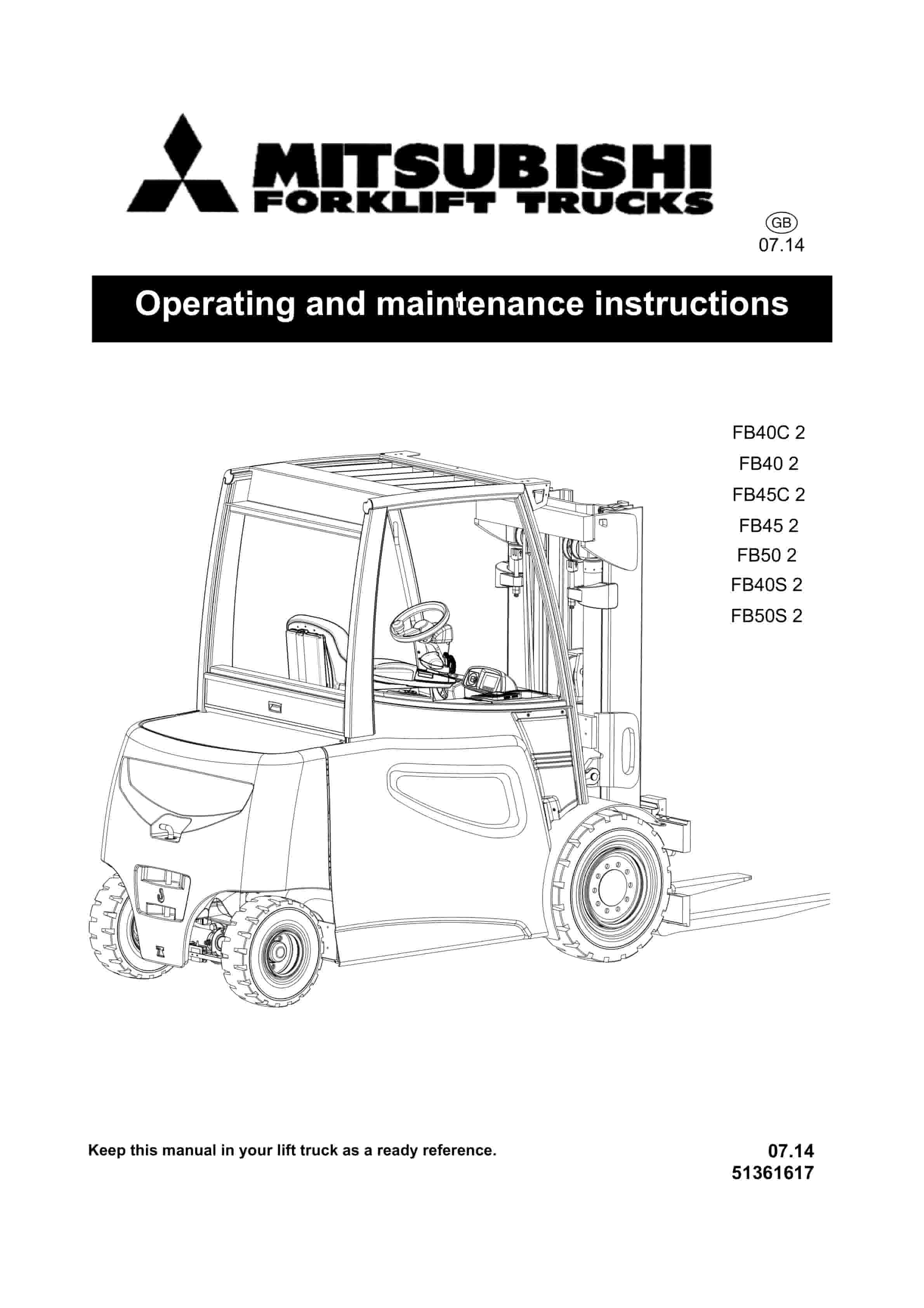 Mitsubishi FB40C 2, FB40 2, FB45C 2, FB45 2, FB50 2, FB40S 2, FB50S 2 Operating and Maintenance Instructions 51361617