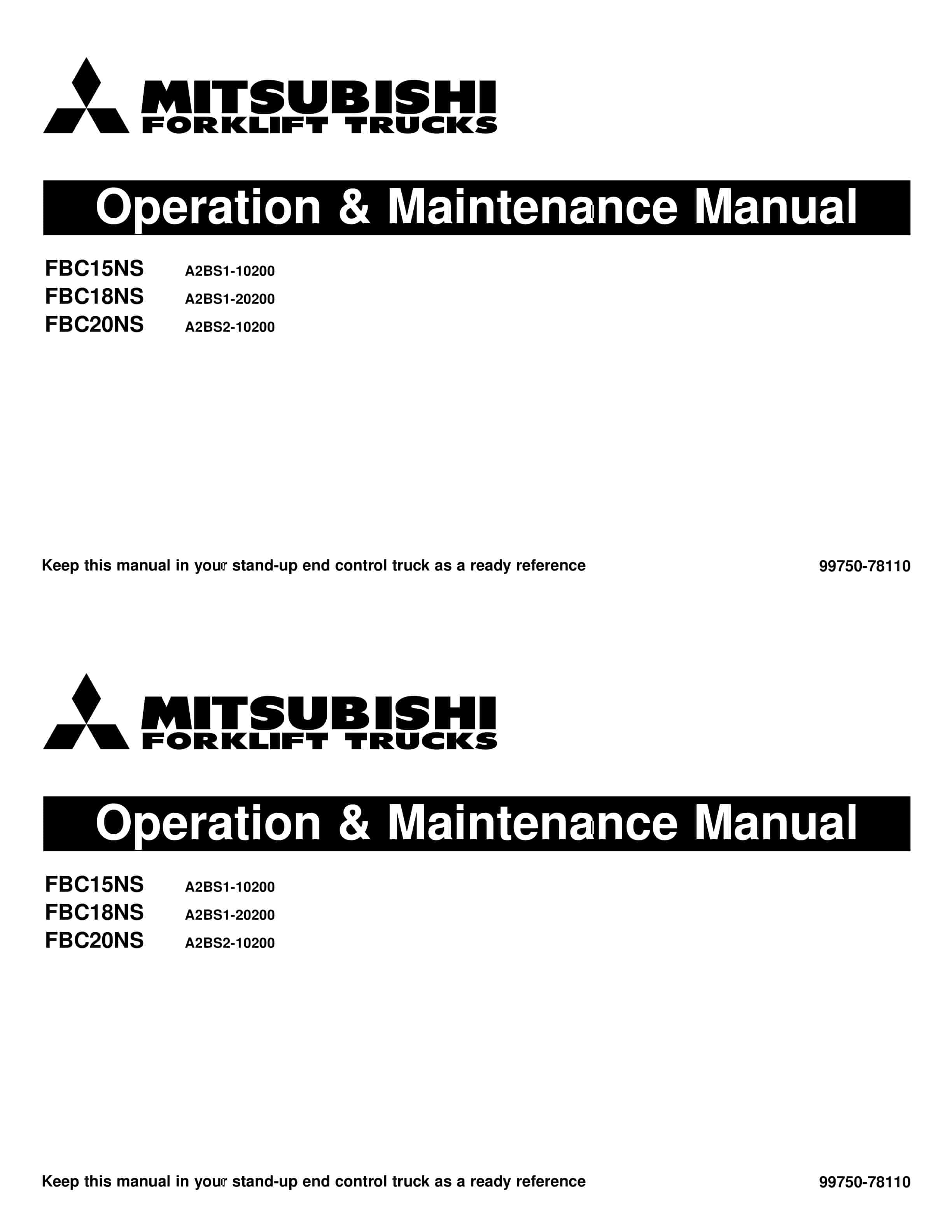 Mitsubishi FBC15-18-20NS Operation and Maintenance Manual 99750-78110