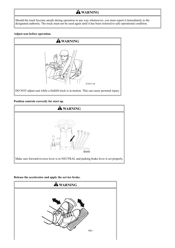 Mitsubishi FB10K RT, FB12K RT, FB15K RT Forklift Trucks Operation and Maintenance Manual 99750-54110