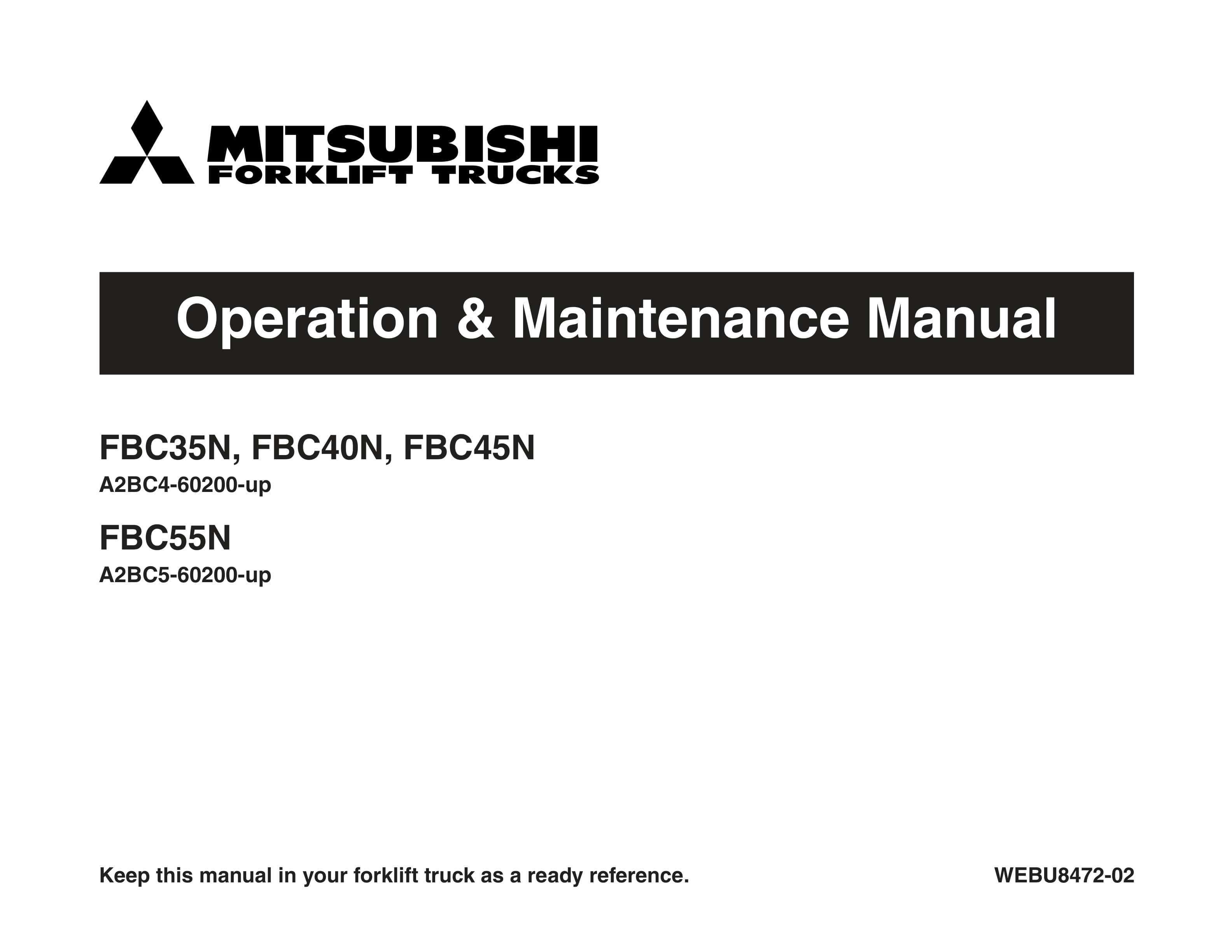 Mitsubishi FBC35N, FBC40N, FBC45N, FBC55N Operation and Maintenance Manual WEBU8472-02