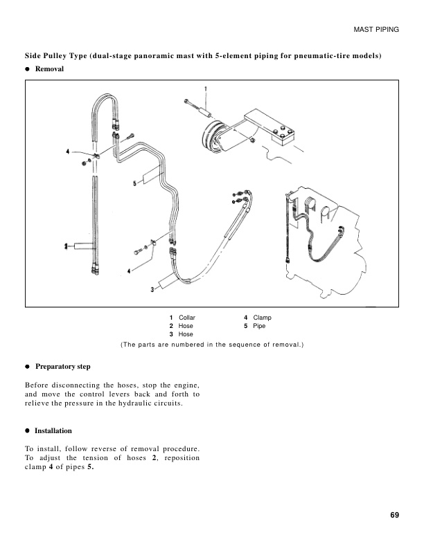 - 33.3.4. Center pulley type (triple-stage, full free panoramic mast with 3-element piping for pneumatic-tire models