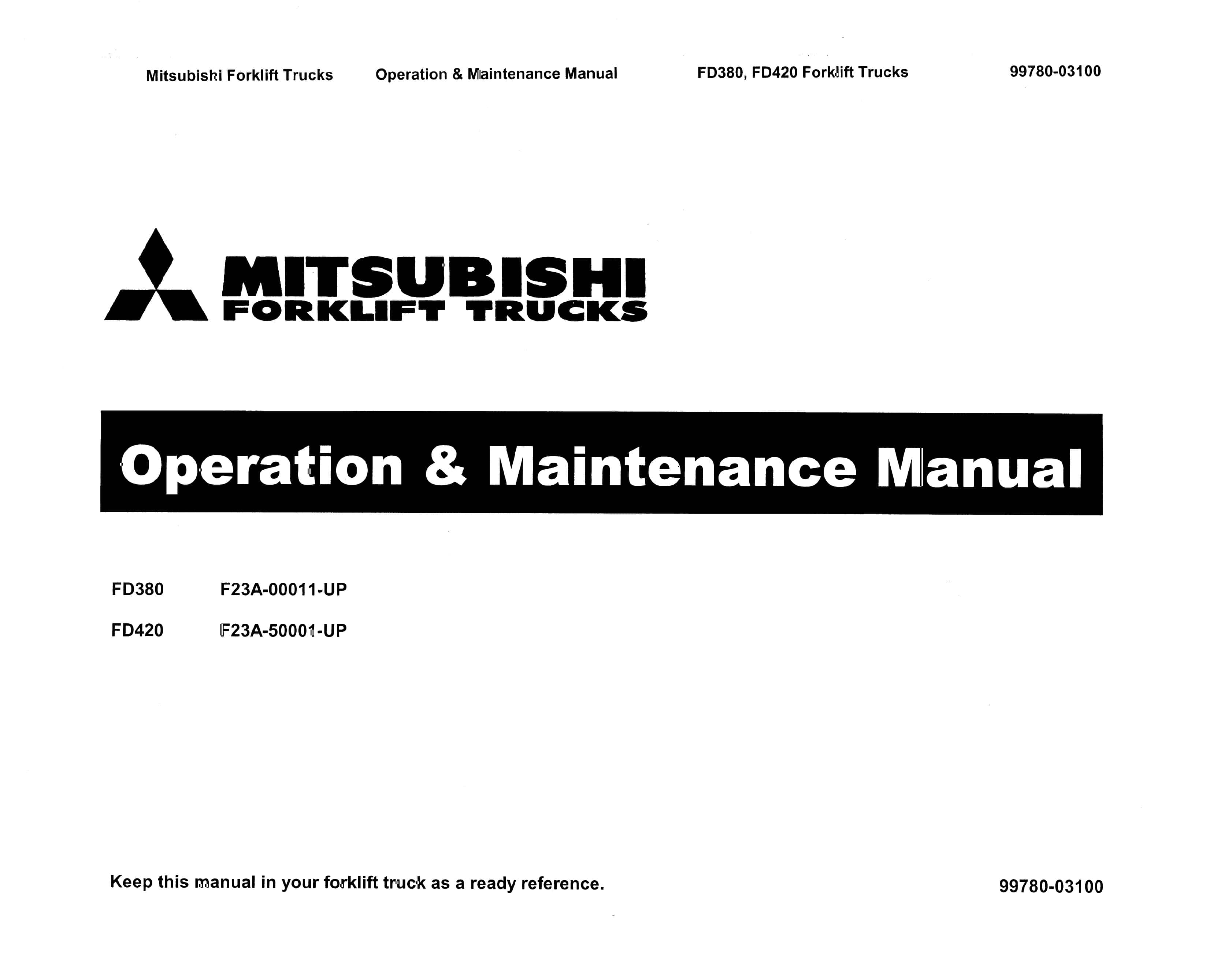 Mitsubishi FD380, FD420 Operation and Maintenance Manual 99780-03100