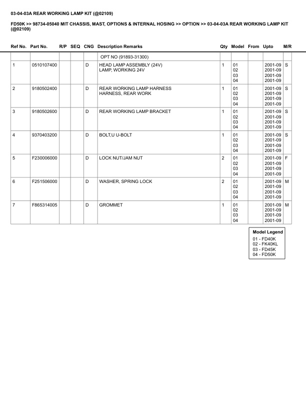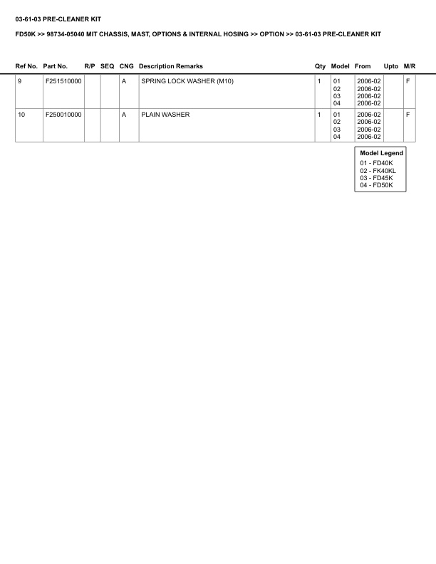 Mitsubishi FD50K Parts Manual 98734-05040