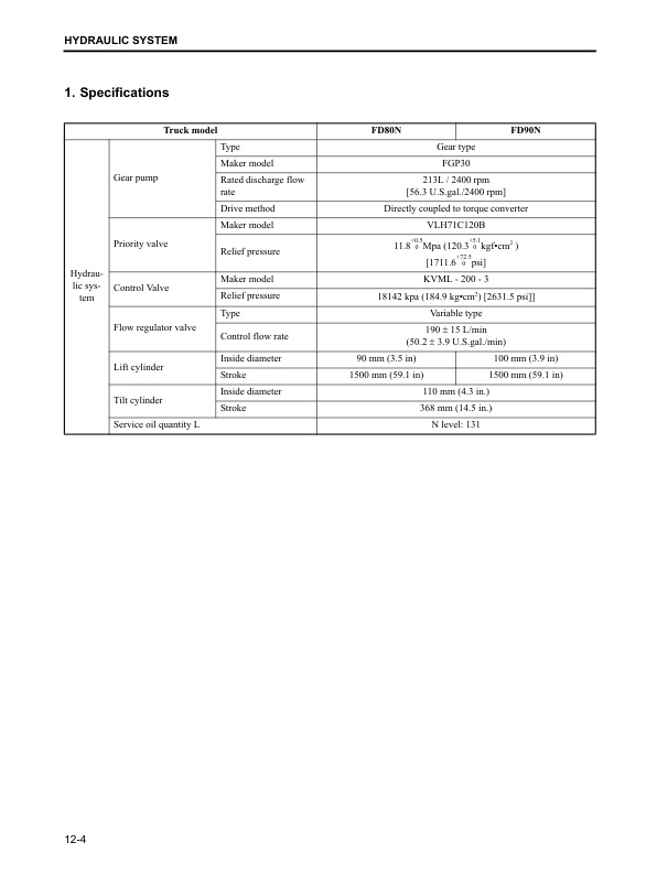 Mitsubishi FD80N, FD90N Chassis, Mast and Options Service Manual 99709-52100
