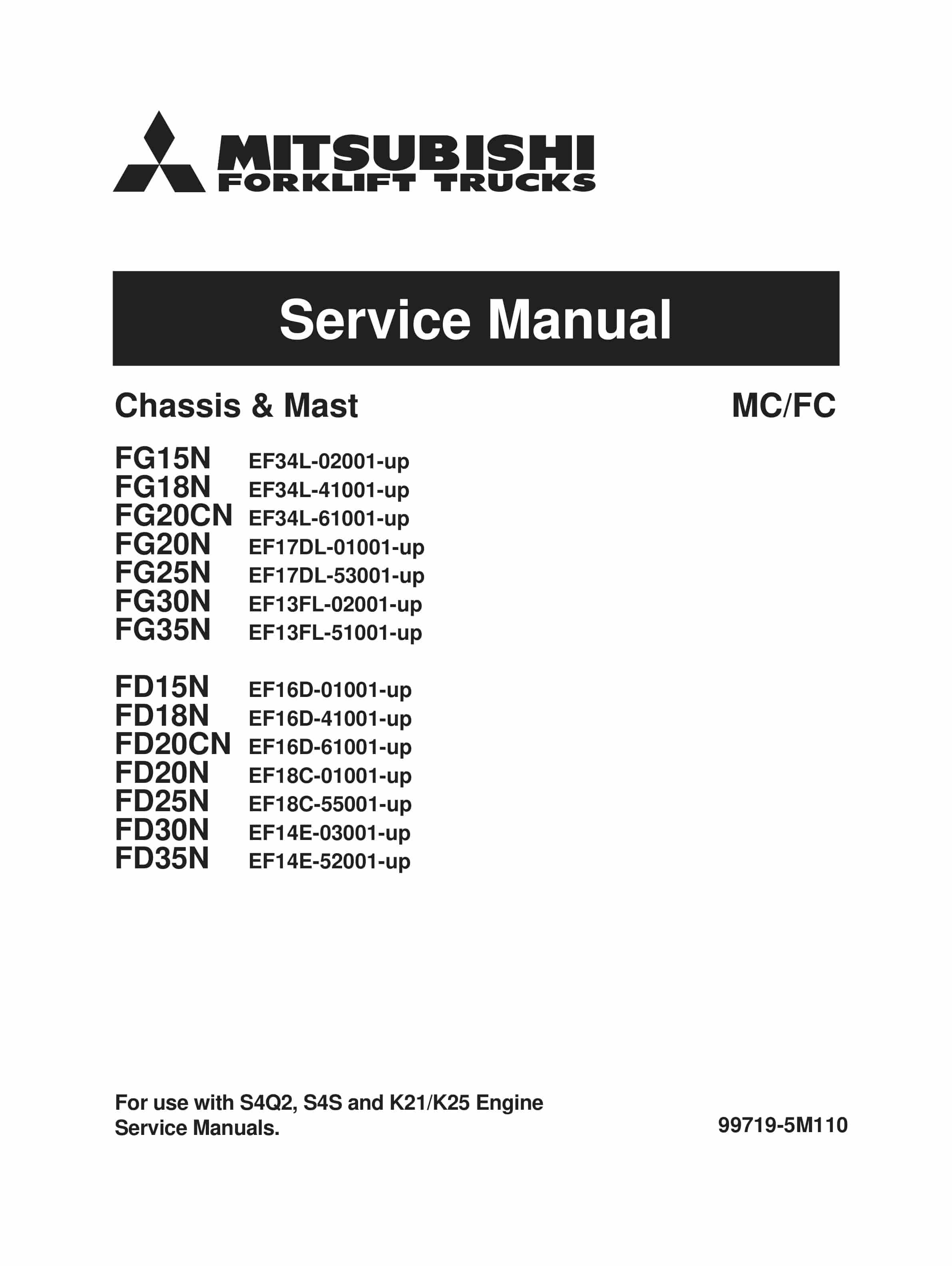 Mitsubishi FG-FD 15N-35N Chassis and Mast Service Manual 99719-5M110