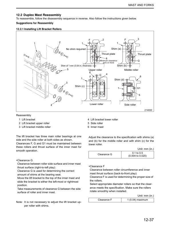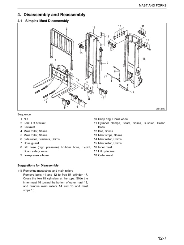 Mitsubishi 5M15D, 5M20D, 5M25D, 5M30D, 5M35D Mast Supplement Service Manual 99739-151T0