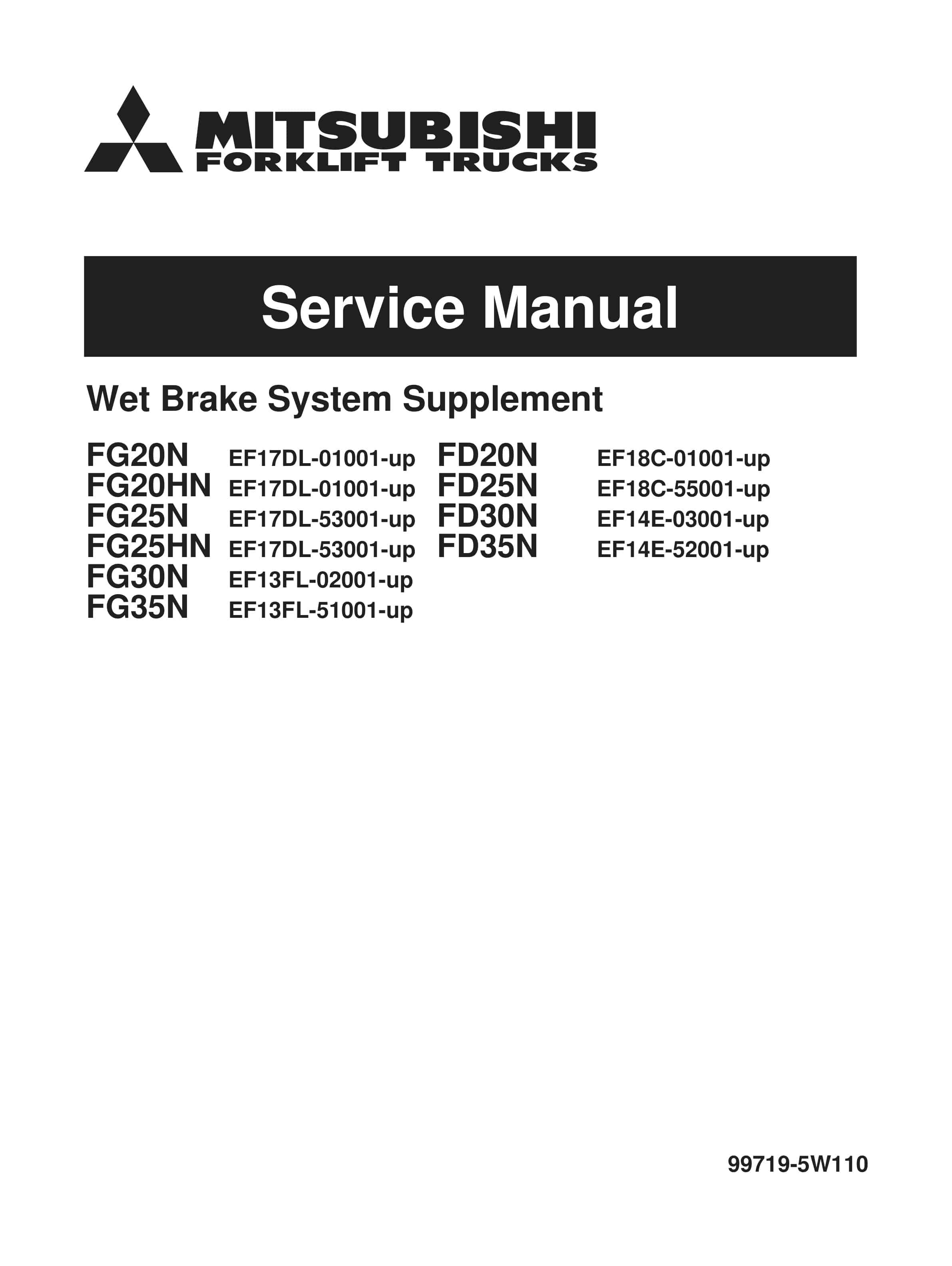 Mitsubishi FG-FD 20N-35N Wet Brake System Supplement Service Manual 99719-5W110