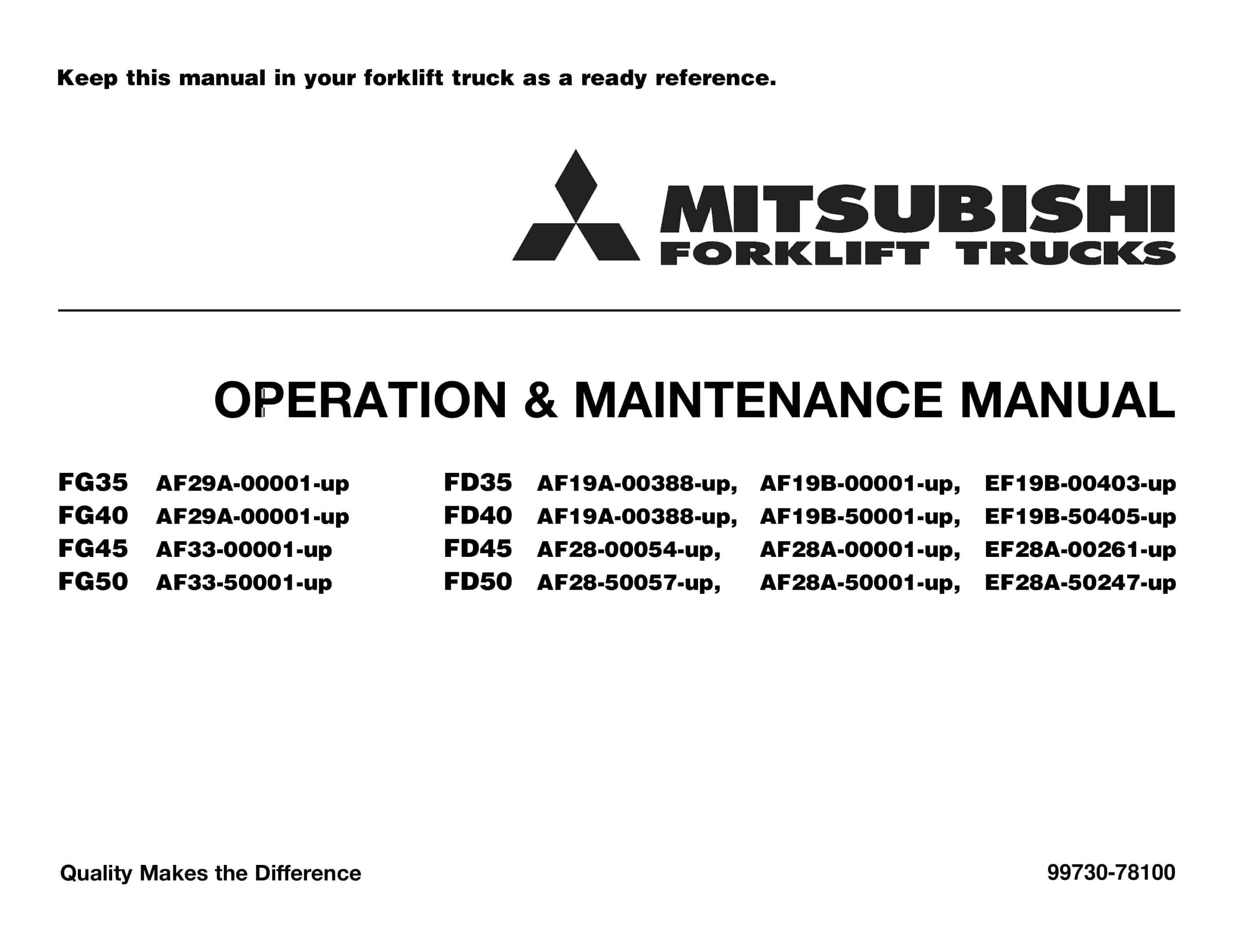 Mitsubishi FG-FD 35-50 Operation and Maintenance Manual 99730-78100