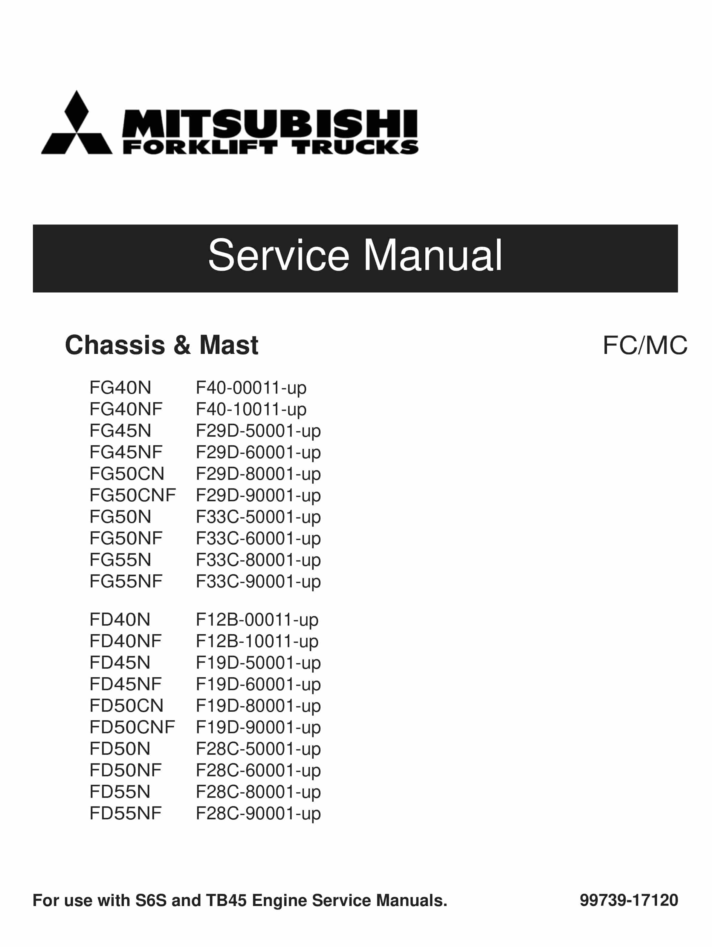 mitsubishi fg fd 40n 55nf chassis and mast service manual 99739 17120 2