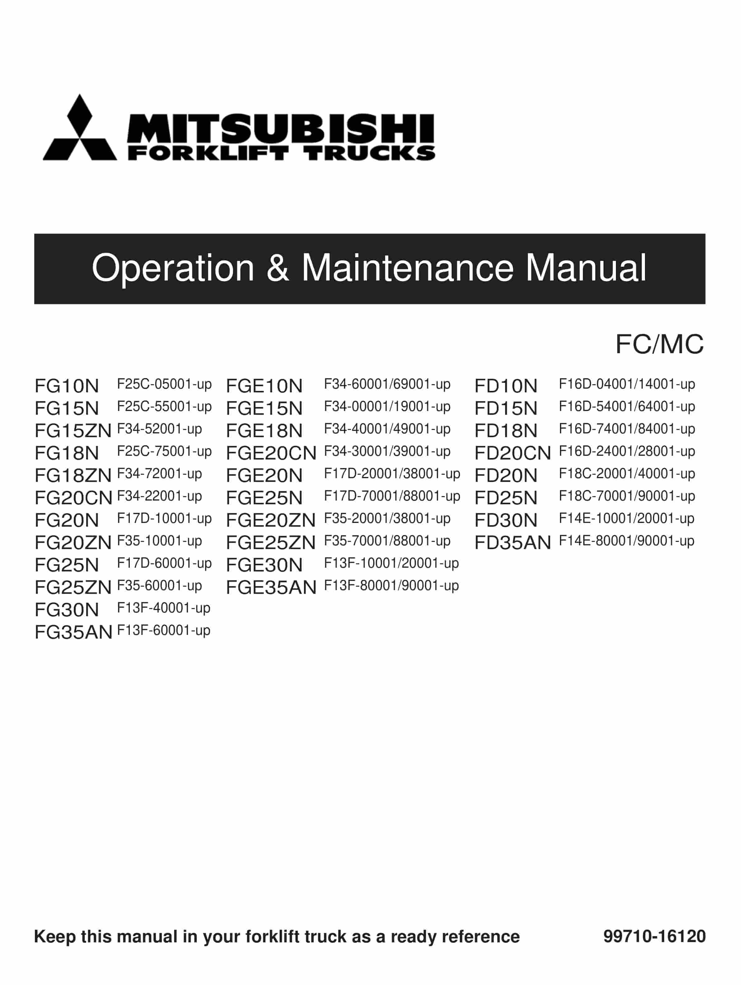 mitsubishi fg10n 35an fge10n 35an fd10n 35an chassis and mast operation and maintenance manual 99710 16120 2