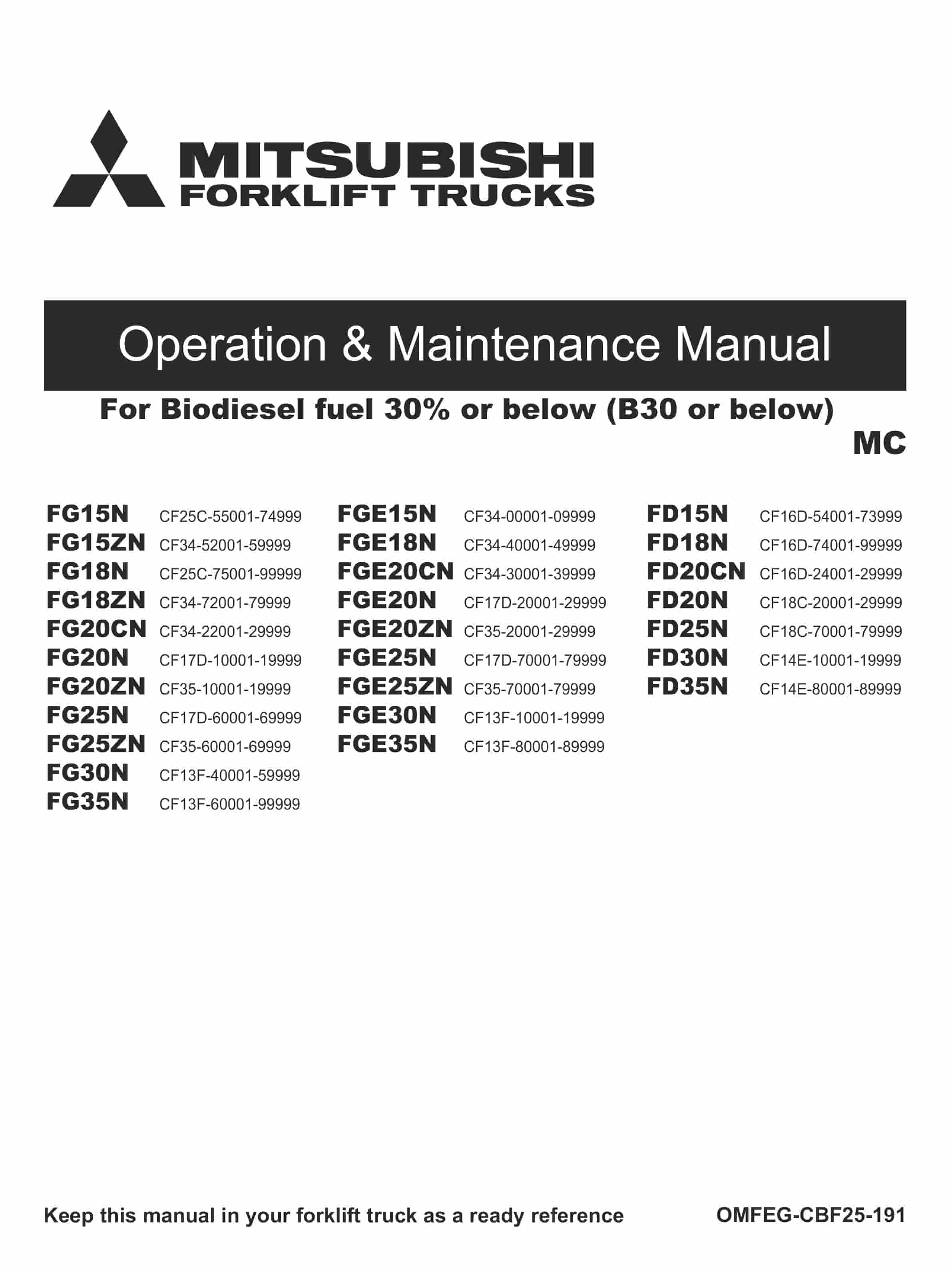 mitsubishi fg15n 35n fge15n 35n fd15n 35n operation and maintenance manual omfeg cbf25 191 2