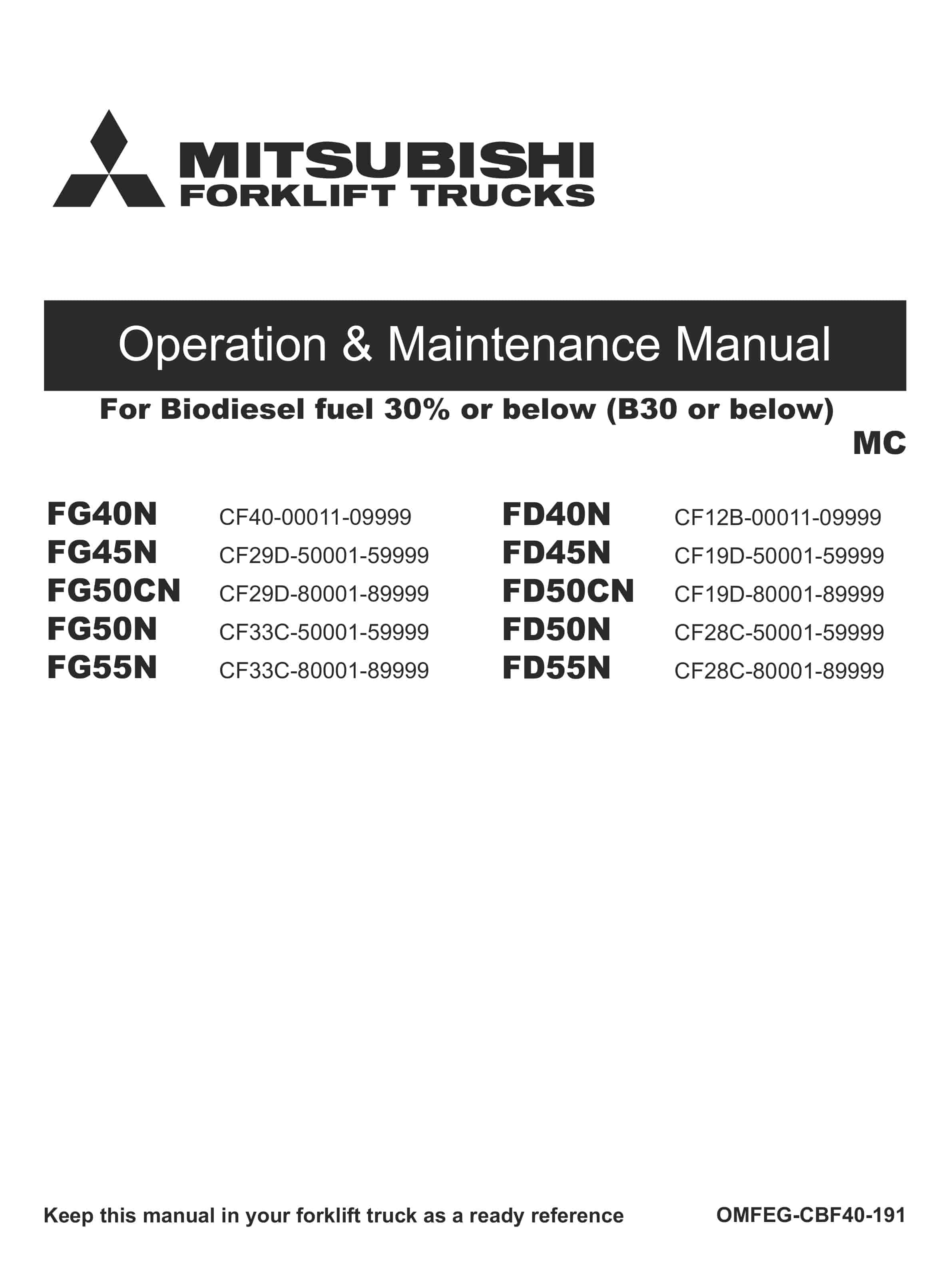 Mitsubishi FG40N-55N, FD40N-55N Operation and Maintenance Manual OMFEG-CBF40-191