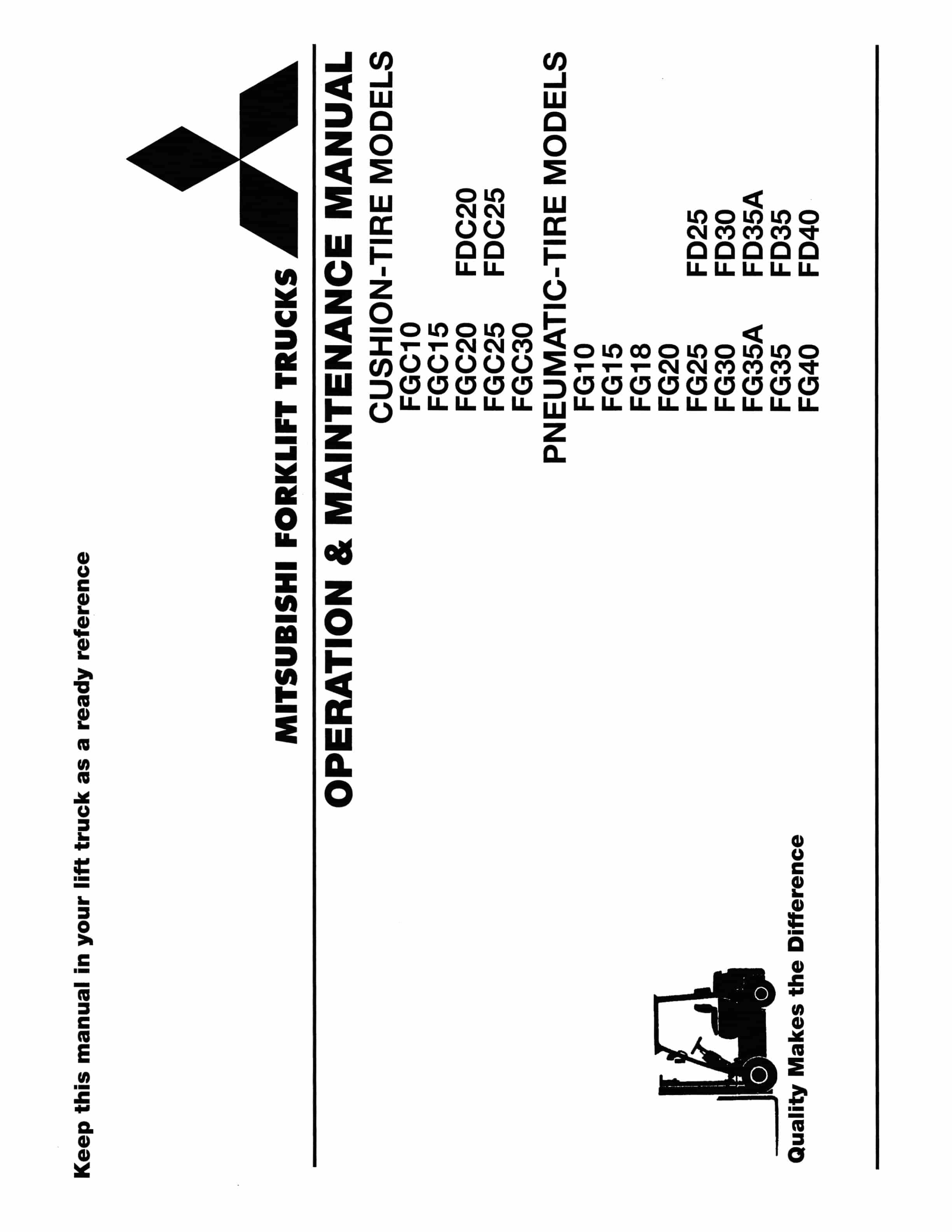 Mitsubishi FGC10-30, FDC20-25, FG10-40, FD25-40 Operation and Maintenance Manual 99710-02130
