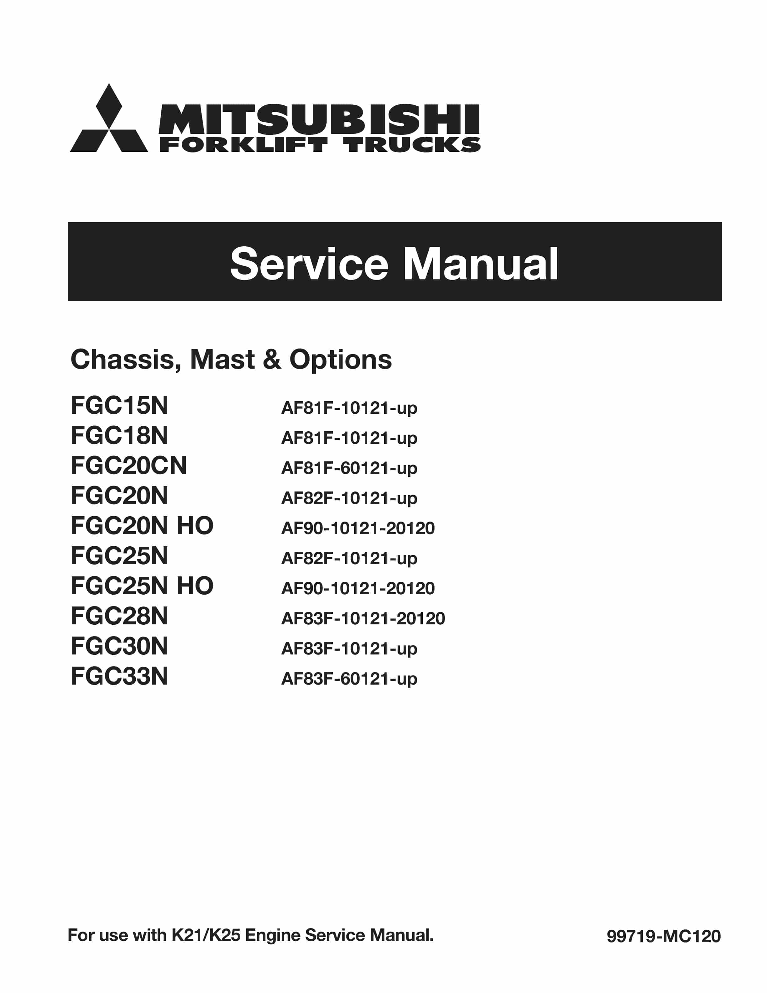 Mitsubishi FGC15N to FGC33N Chassis, Mast and Options Service Manual 99719-MC120