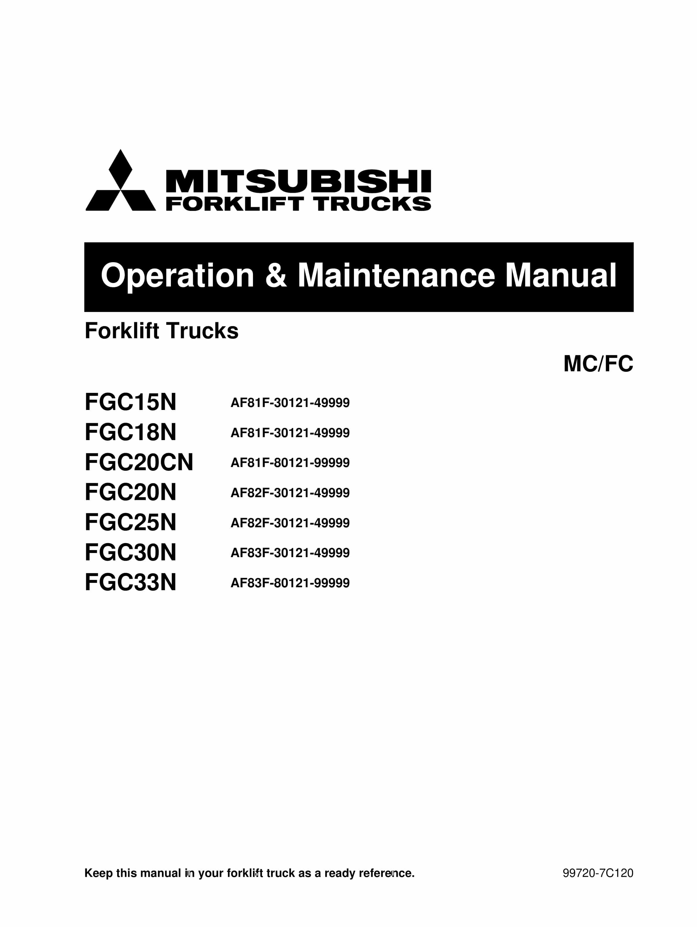 Mitsubishi FGC15N to FGC33N Forklift Trucks Operation and Maintenance Manual 99720-7C120