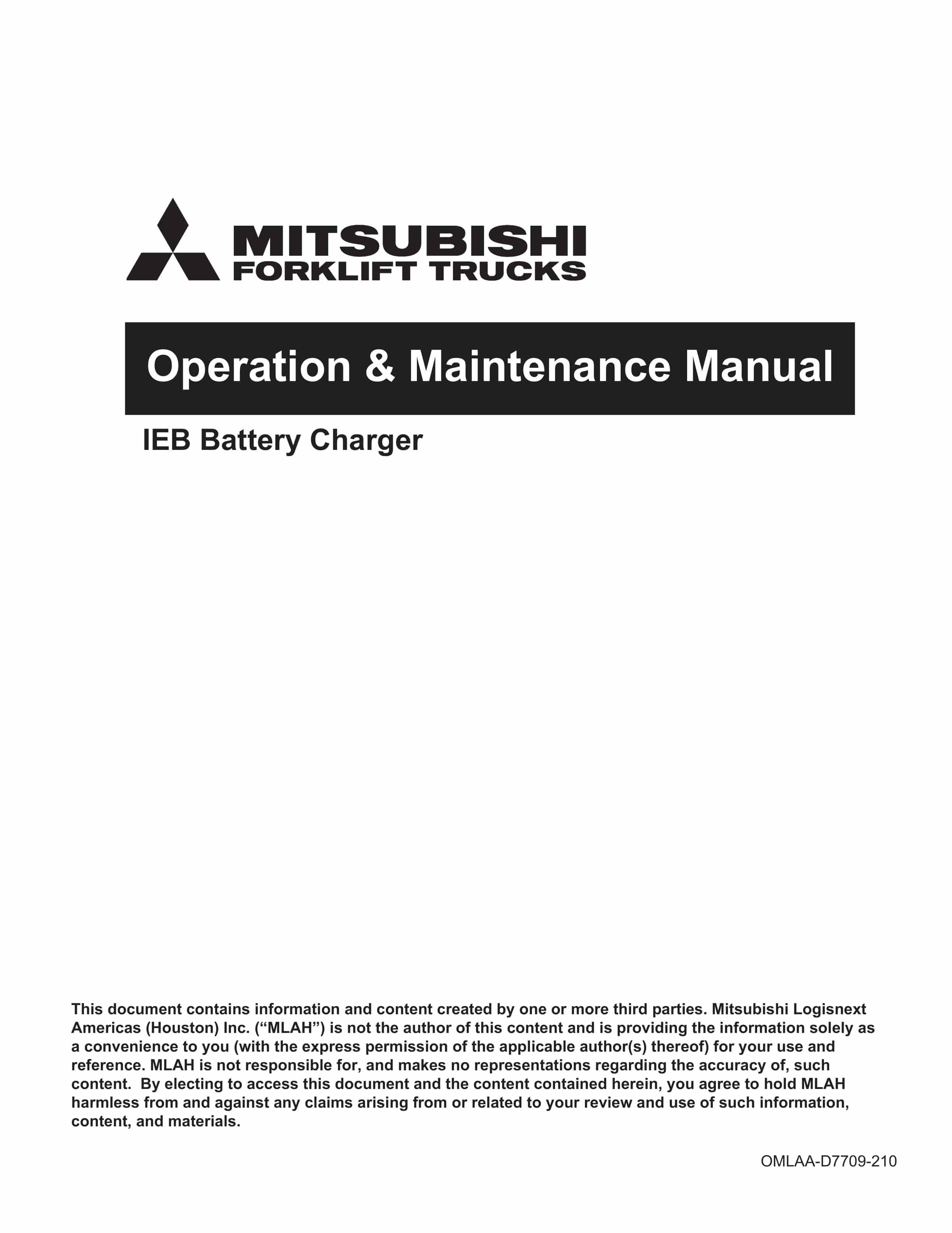Mitsubishi IEB Battery Charger Operation and Maintenance Manual OMLAA-D7709-210
