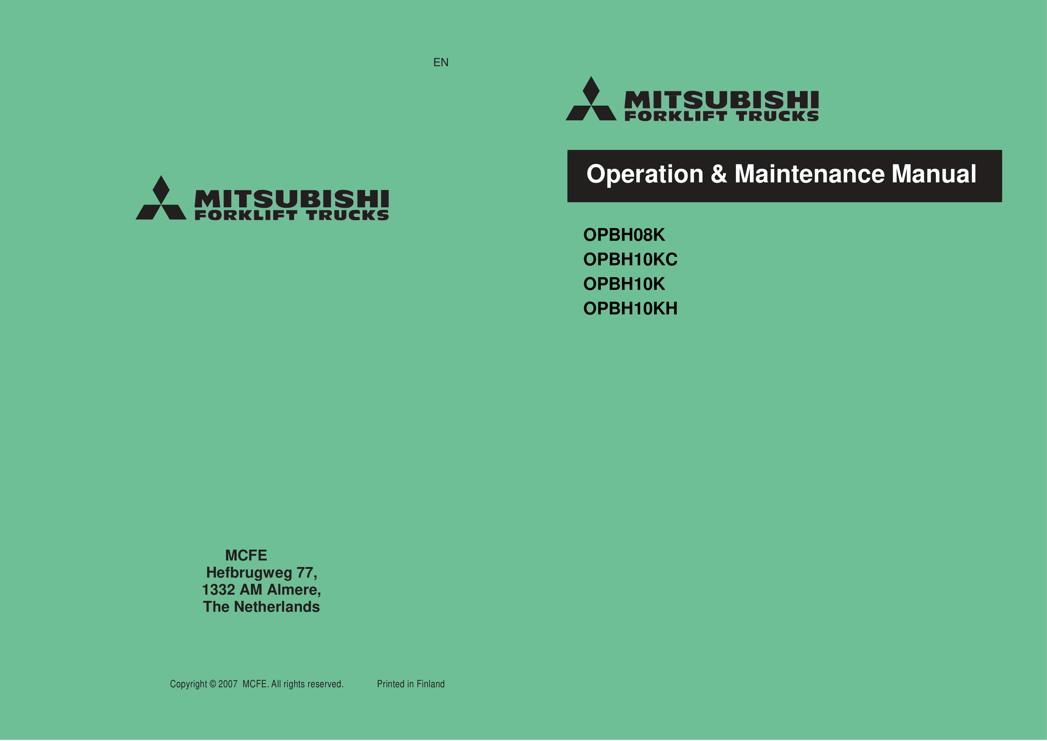 Mitsubishi OPBH08K, OPBH10KC, OPBH10K, OPBH10KH Operation and Maintenance Manual WHOMM0020