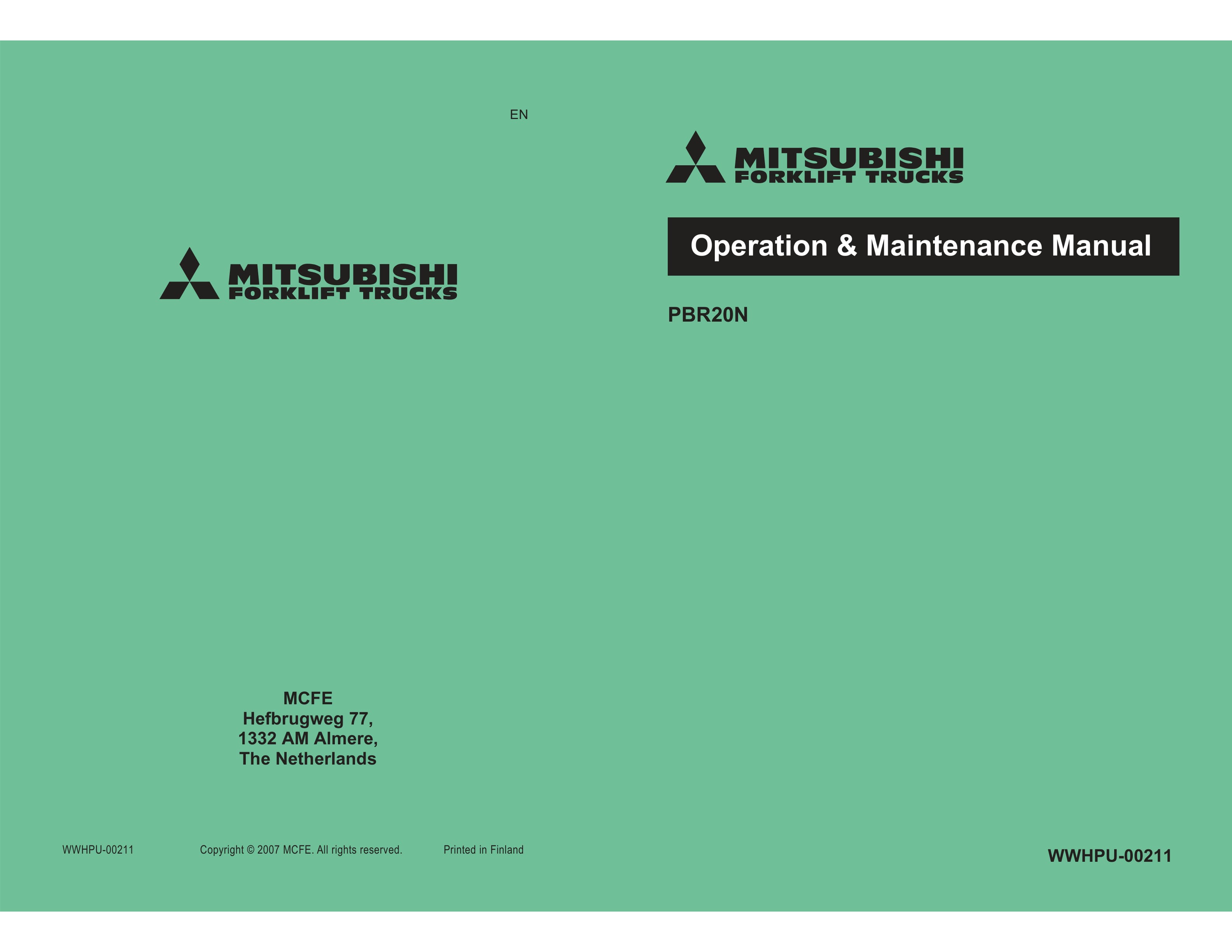 Mitsubishi PBR20N Operation and Maintenance Manual WWHPU-00211