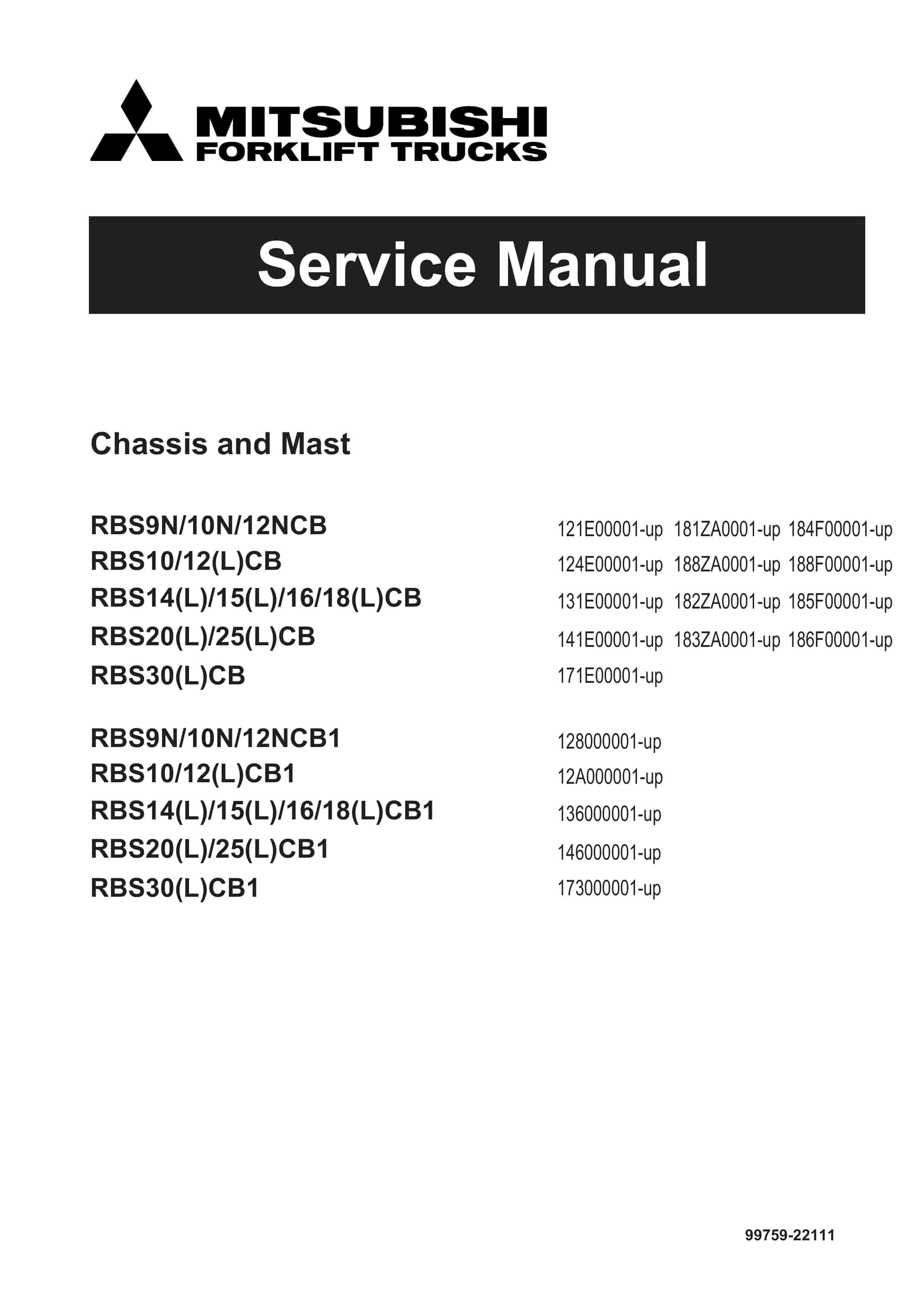 Mitsubishi PBS9N-12NCB, RBS10-30(L)CB, PBS9N-12NCB1, RBS10-30(L)CB1 Chassis and Mast Service Manual 99759-22111