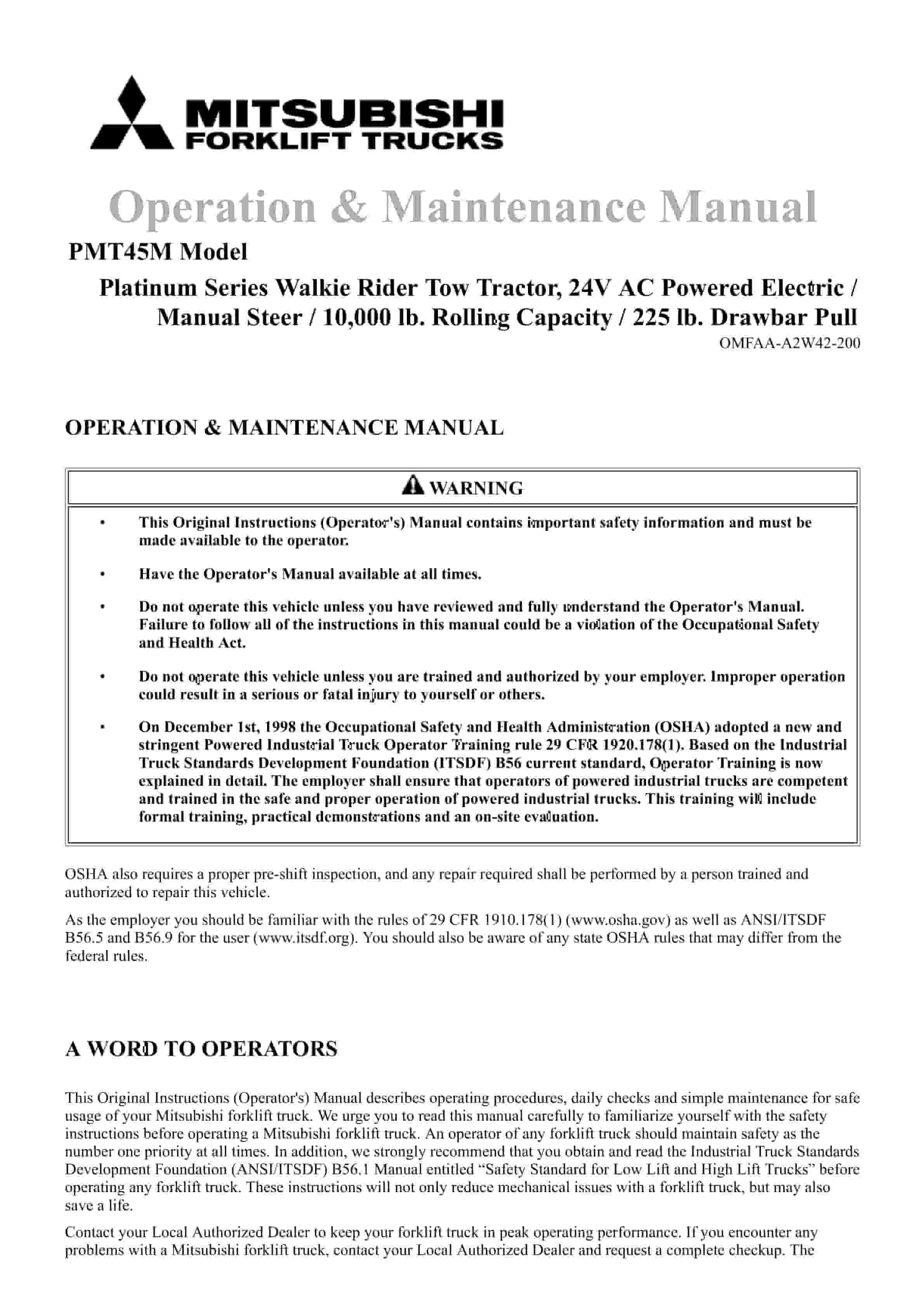 Mitsubishi PMT45M Operation and Maintenance Manual OMFAA-A2W42-200