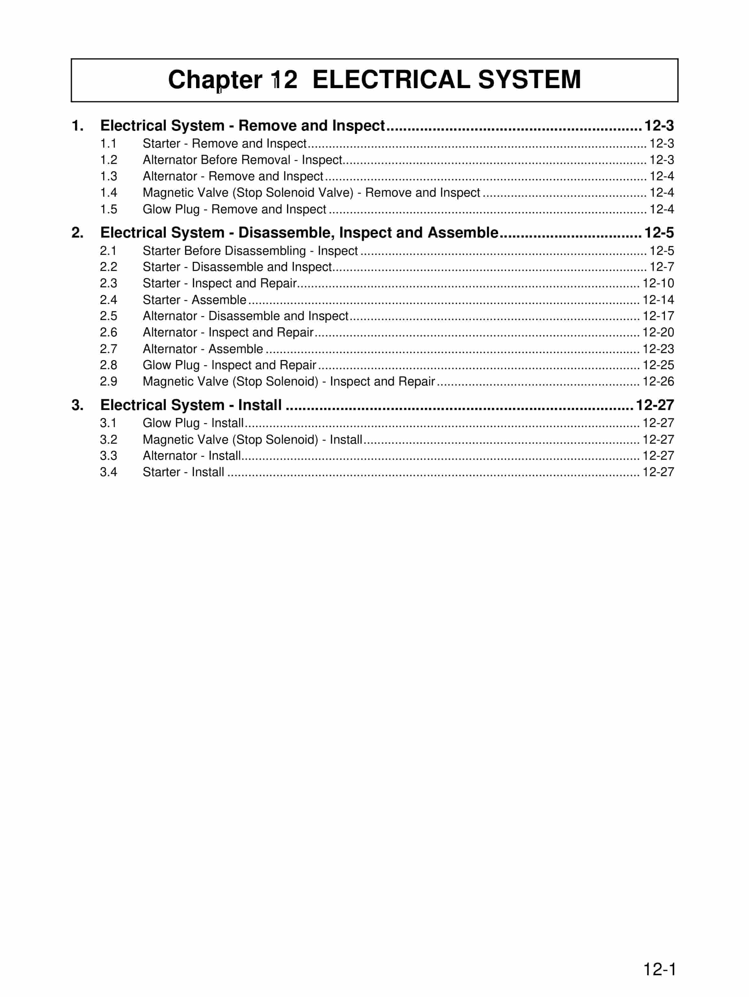 - 14.2. Electrical System – Disassemble, Inspect and Assemble