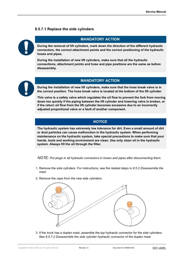 - 9.6.3. Replace the sealing housing of the side stabilizer cylinders