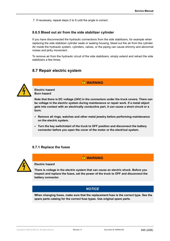 - 9.6.5. Bleed out air from the side stabilizer cylinder