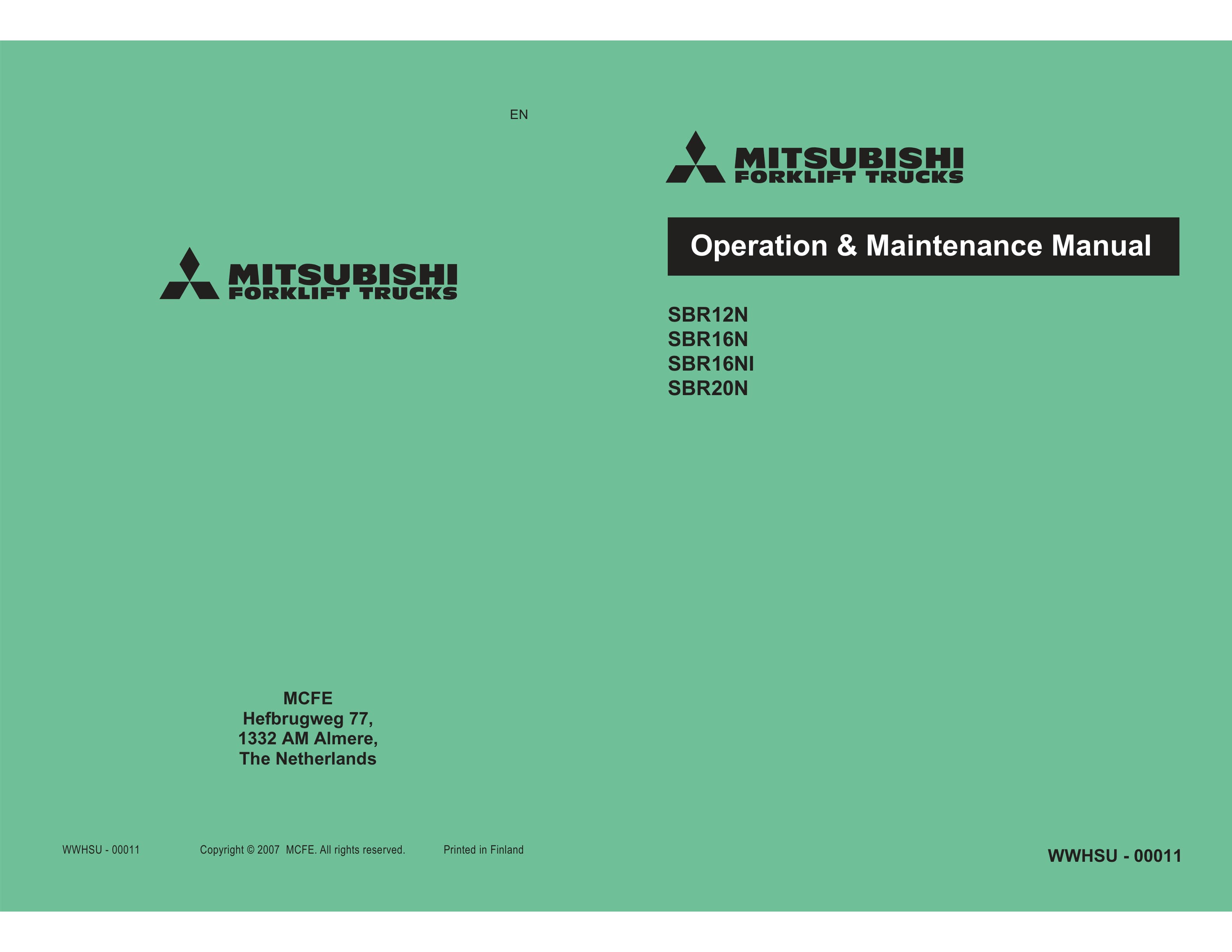 Mitsubishi SBR12N, SBR16N, SBR16NI, SBR20N2 Operation and Maintenance Manual WWHSU-00011