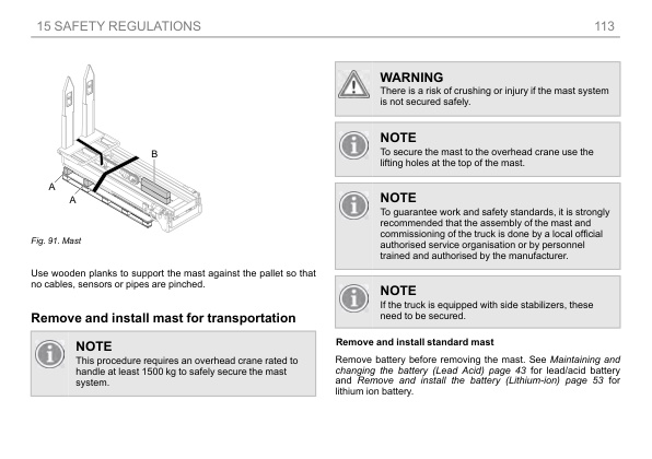 • 15.7. Remove and install mast for transportation