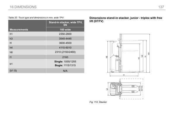 • 16.1.4. Dimensions stand-in stacker, junior – triplex with free lift (DTFV)