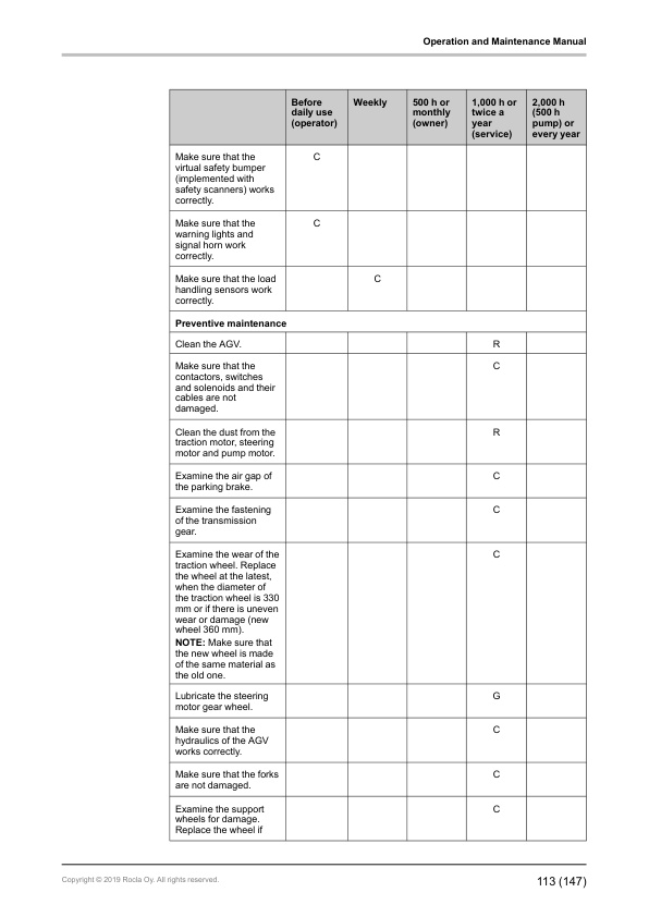 Rocla AWTm Operation and Maintenance Manual 629280 EN-C.1